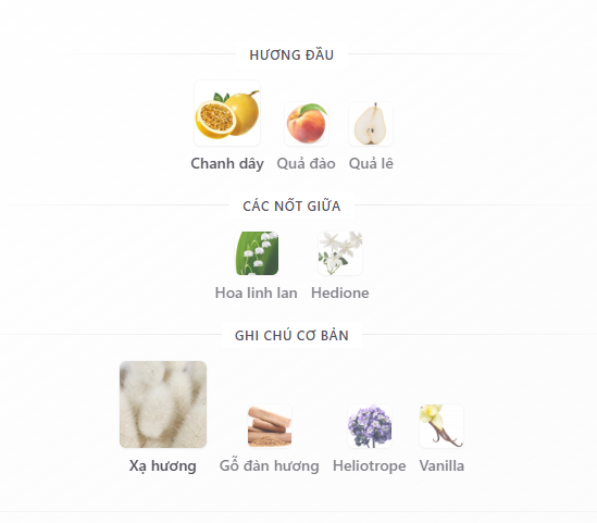 Hương đầu: Chanh dây, Đào, Lê